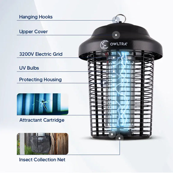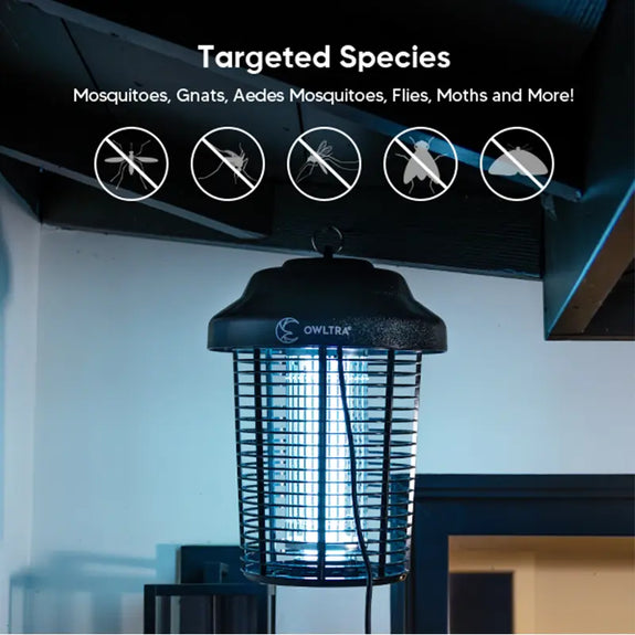 OWLTRA OMT-E80 outdoor electronic insect killer attracts a wide range of insects including mosquitoes, gnats, aedes mosquitoes, flies, moths, and more!