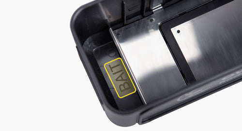 - Convenient Baiting - The trap’s accessible bait area is designed for easy bait application. Lift the bait door and use a toothpick or cotton swab to place high-protein bait, like peanut butter, on the floor opposite the entrance.